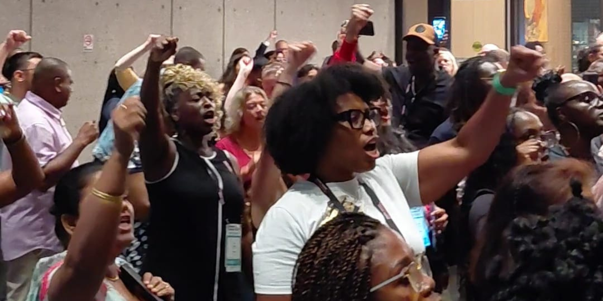 This led to a protest at dinner in which Black members and allies walked out of the banquet and into the street chanting and singing “Lift Every Voice and Sing.” The group then returned to strategize for what was next.