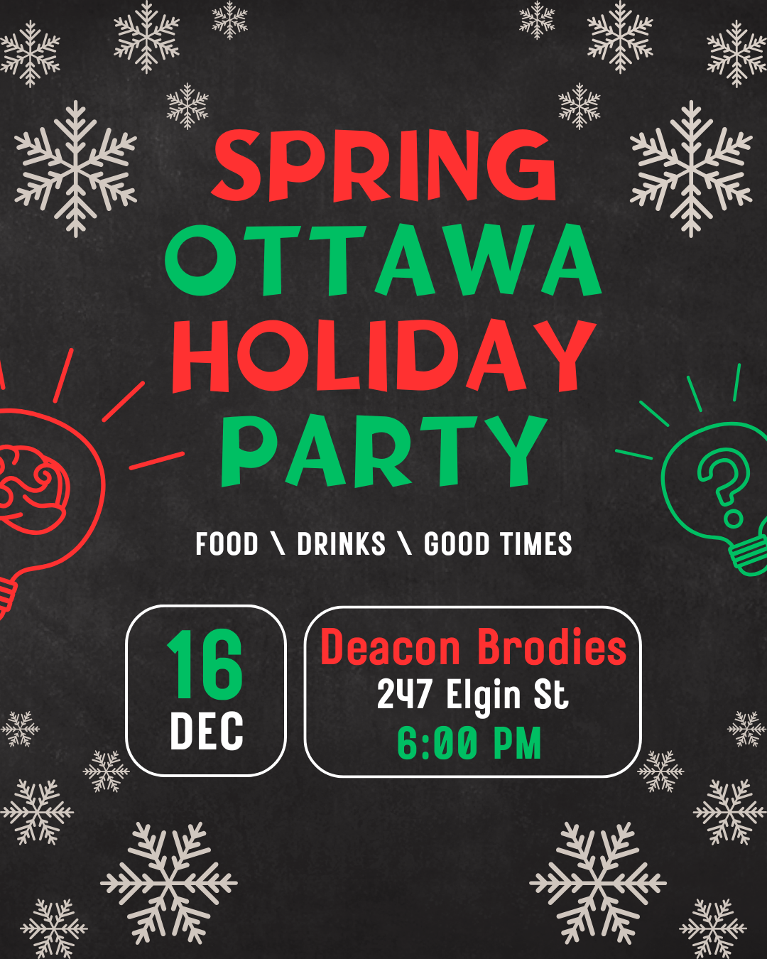 Deacon Brodies Pub 247 Elgin St, Ottawa, Ontario, CanadaJoin Spring's Ottawa chapter for an evening of socialist socializing at our holiday party, taking place on Tuesday, December 16, 6pm at Deacon Brodies Pub (247...