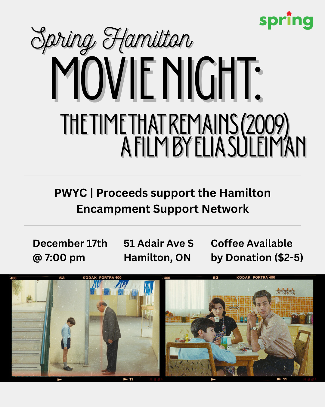 Please join Spring's Hamilton chapter for a movie night on Wednesday, December 17th @ 7 pm at Solidarity Place (51 Adair Ave S). We will...