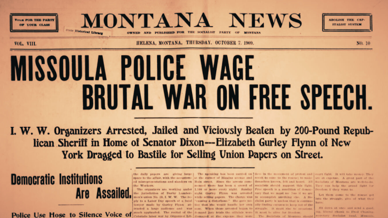 On October 3, 1909, American labour activist Elizabeth Gurley Flynn was arrested in Missoula, Montana. She was leading a campaign of civil disobedience across the American West that united demands for workers’ rights with free speech advocacy. These “free speech fights,” as they became known, inspired generations of socialists to identify free speech rights as a key part of the class struggle.