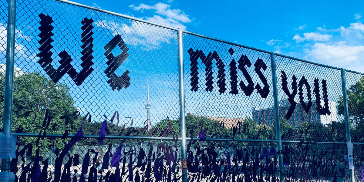 In Toronto, HAC is planning a series of community-led art installations and direct actions taking place over the day. We invite everyone to gather with us at “The Cube” at Scadding Court (707 Dundas St W) from 2pm onward on August 31. A procession to the vigil will depart at 6pm, following a winding route, illuminating dark alleyways and ending at the art installation at Trinity Bellwoods Park where the words “We miss you” were woven into the tennis court fence for last year’s event. The vigil will commence at 7:30pm, when all participants will be invited to then add to the installation with ribbons to memorialize lost ones. There will also be speakers and a grief tent.